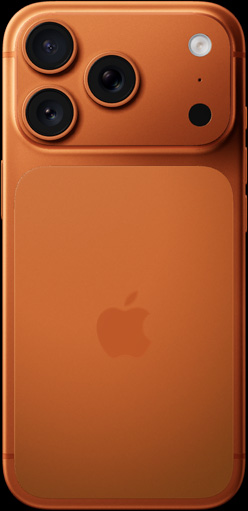 Farben. Du kannst aus drei starken Farben wählen. Hier siehst du das iPhone 17 Pro in Cosmic Orange.