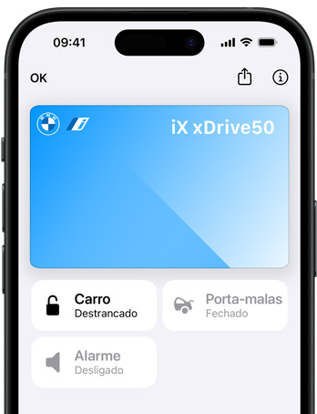 O app Carteira está no seu iPhone. Nele,