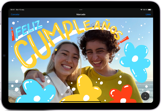 El Apple Pencil Pro suma aún más posibilidades para ayudarte a crear lo que te imagines. Con funcionalidades avanzadas como Apretar y Girar, junto con la respuesta háptica, puedes escribir, marcar documentos y crear tu obra maestra de forma más intuitiva que nunca. Usa el puntero flotante para ver exactamente en qué lugar de la pantalla tocará el Apple Pencil Pro1 y cambia de herramienta al instante con sólo tocarlo dos veces. Y si lo pierdes de vista, puedes ubicarlo fácilmente con la app Encontrar sin importar dónde estés. El Apple Pencil Pro se enlaza, se guarda y se carga de forma magnética en la parte lateral del iPad.