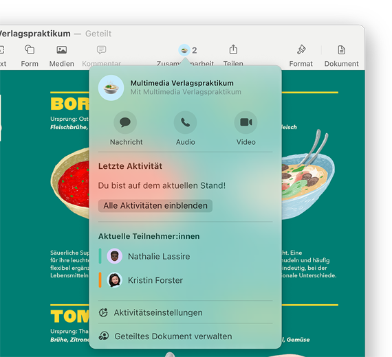 Einfaches Zusammenarbeiten und Teilen von Dateien, Ordnern, Dokumenten und mehr, wenn du unterwegs bist. Schicke einfach einen privaten Link und lege fest, ob andere die Arbeit sehen, teilen oder bearbeiten können. Und mit Live Updates siehst du auch die Änderungen, die gerade gemacht werden.