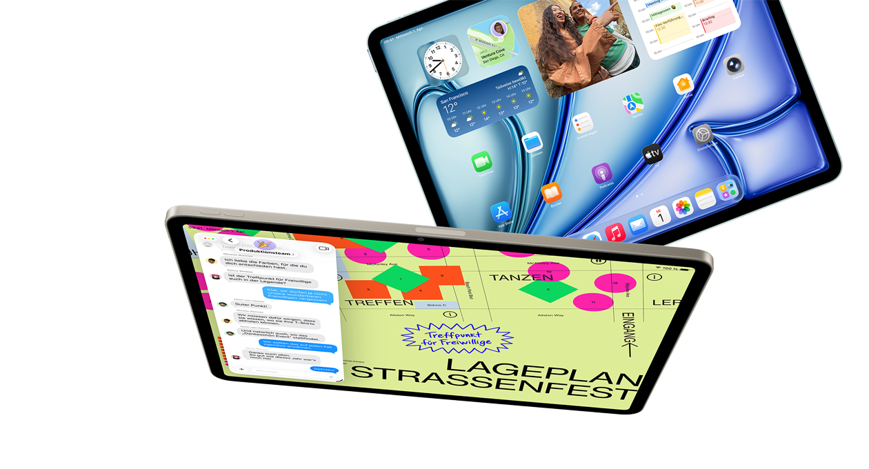 iPadOS 26 kommt mit Liquid Glass, einem beein­druckenden neuen Design mit brillantem Look und bahn­brechenden Verbes­serungen, die Produktivität auf dem iPad Air auf ein neues Level bringen. Ein über­arbeitetes, intui­tives Fenstersystem gibt dir mehr Möglich­keiten und Flexibilität als je zuvor. Du kannst Pro Apps nutzen, anspruchs­volle Games spielen und kreative Pro­jekte jeder Größe erle­digen – ganz natürlich per Touch.