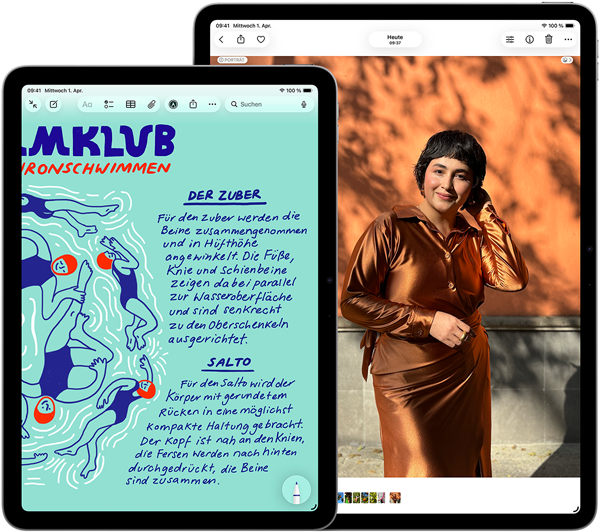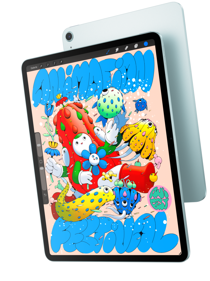 Du kannst zwi­schen einem 11" und einem 13" iPad Air wählen – beide haben ein fan­tas­tisches hoch­auflösendes Liquid Retina Dis­play für eine brillante, reaktions­schnelle und farb­genaue Bild­qualität. So wirkt alles, was du damit machst, unglaub­lich lebendig.