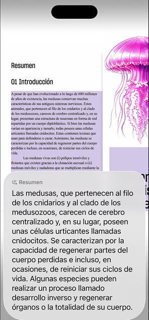 Consigue más información sobre lo que tienes delante, ya sea en la pantalla de tu iPhone o mientras vas por la calle. Resume lo que estás viendo o haz preguntas, como qué cocinar con lo que hay en la nevera. Y encuentra lo que quieras en tus apps favoritas, por ejemplo: dónde comprar ese bolso tan chulo que has visto.4