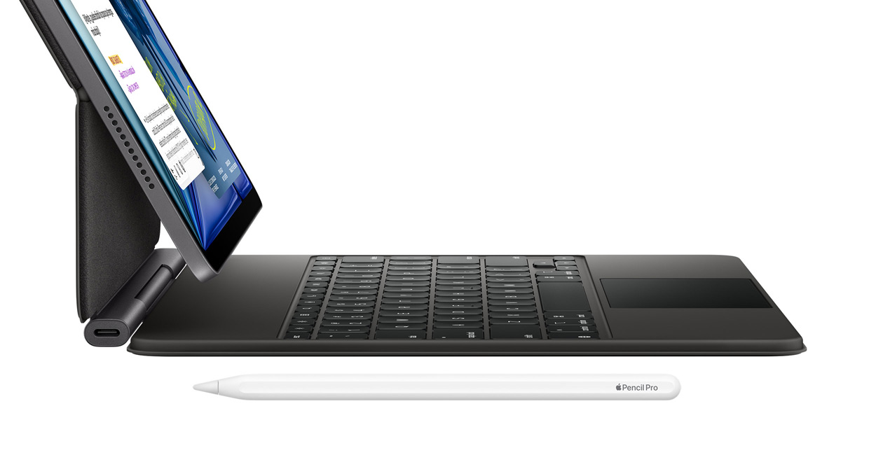 iPad Air acoplado a un Magic Keyboard para el iPad Air con un Apple Pencil Pro