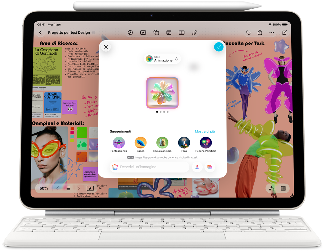 Disegna, dipingi, prendi appunti: Apple Pencil rende tutto più facile e intuitivo, come per magia. È precisa al pixel, ha una bassa latenza, cambia il tratto in base all’inclinazione. Mentre la usi puoi appoggiare la mano sullo schermo, proprio come faresti su un foglio. E Apple Pencil Pro ha una serie di funzioni ancora più evolute per aiutarti a dare vita alle tue idee.2
