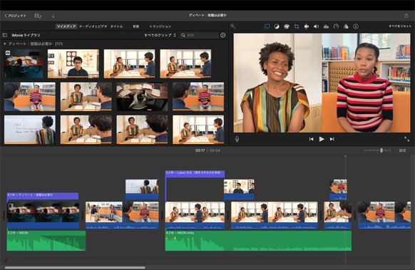iMovieで、課題をポッドキャストや映像作品に変身させよう。