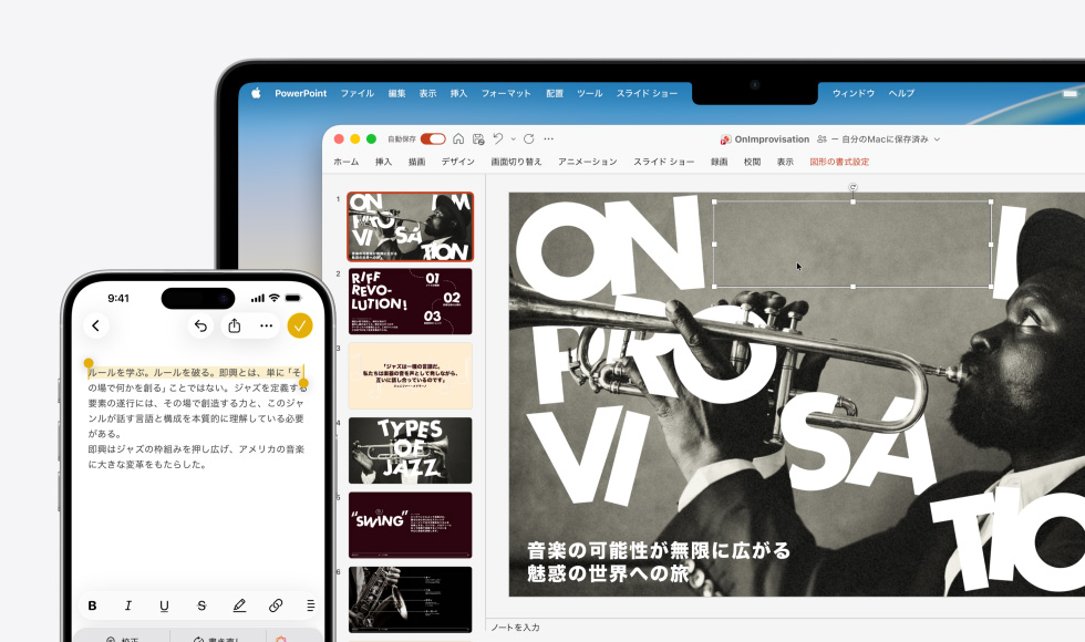 わずか1.23kgと驚くほど軽量で、薄さは1cmあまりのMacBook Air。バッグに軽やかに収まるので、