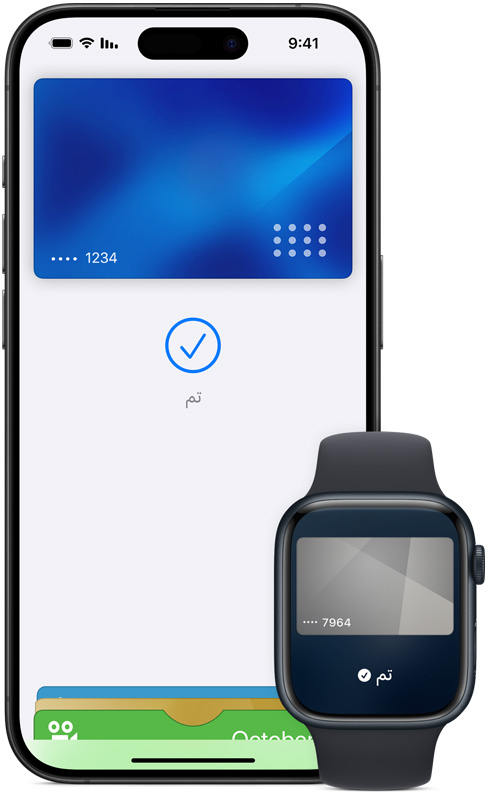 • تعد Apple Pay أكثر أماناً من استخدام بطاقات الائتمان أو السحب أو بطاقات الدفع المسبق الفعلية. وهي تتطلب استخدام بصمة الوجه أو بصمة الإصبع أو رمز المرور الخاص بك لإتمام عمليات الشراء على iPhone أو Apple Watch أو Mac أو iPad. ولا تتم مشاركة رقم بطاقتك أو هويتك مع التجار، وكذلك لا تُحفظ أرقام بطاقتك الفعلية على جهازك أو على سيرفرات Apple.