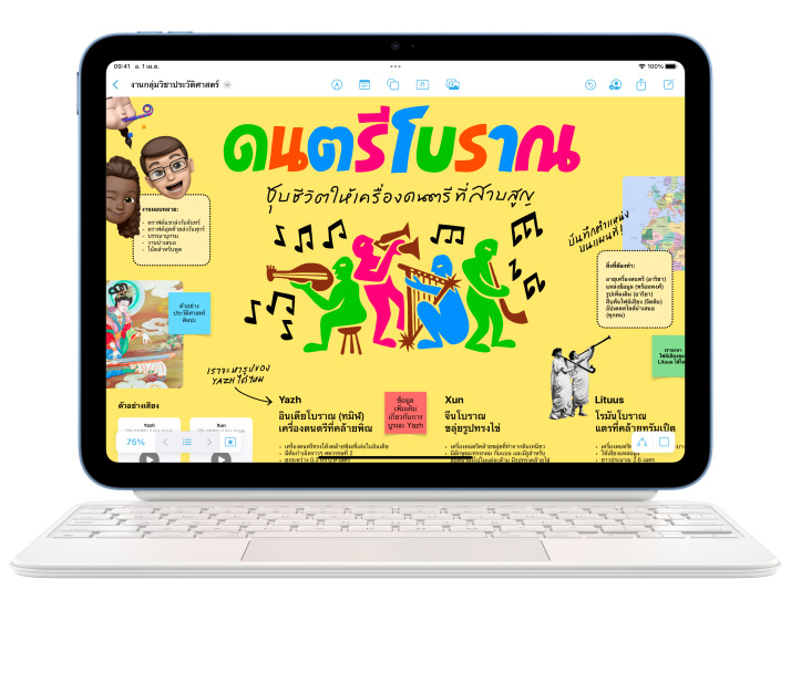 แก้ไขสเปรดชีต ใส่ลูกเล่นในงานนำเสนอ Keynote และจดโน้ตเจ๋งๆ ได้เลย กับ Magic Keyboard Folio ที่มอบประสบการณ์การพิมพ์ที่สะดวกสบายและแทร็คแพดสำหรับงานที่ต้องใช้ความแม่นยำ2