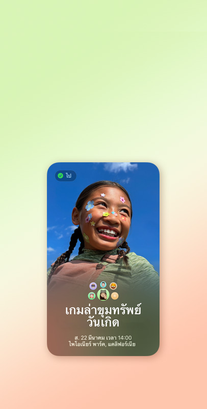 และผู้คน จากคลังรูปภาพ ของคุณเพื่อ สร้างสรรค์ ภาพสนุกๆ ด้วย Apple Intelligence6 ใช้ได้กับ