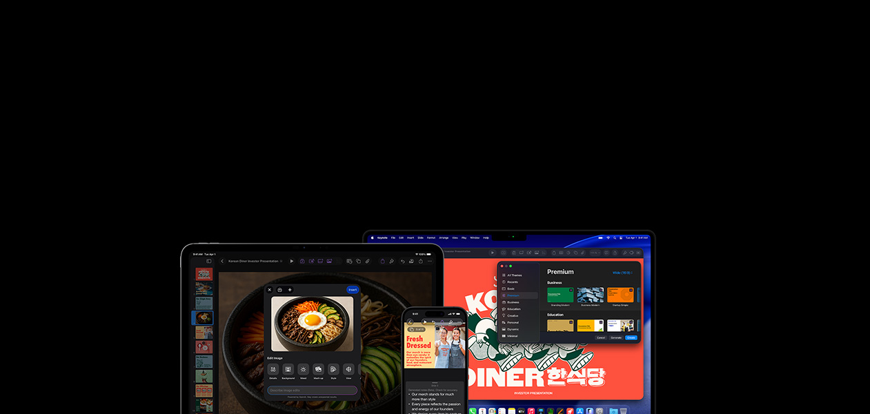 ออกแบบ เอกสาร ที่สวยสะดุดตา ทำงานร่วมกัน ในแบบเรียลไทม์ ปรับแต่ง ฟอนต์และ สไตล์ ตัวอักษร พร้อมเพิ่ม กราฟิกได้ แล้วเมื่อ เป็นสมาชิก Apple Creator Studio คุณจะได้ใช้ คอนเทนต์ระดับ พรีเมี่ยมและ ความสามารถ อัจฉริยะ อันทรงพลัง ใช้ได้กับ