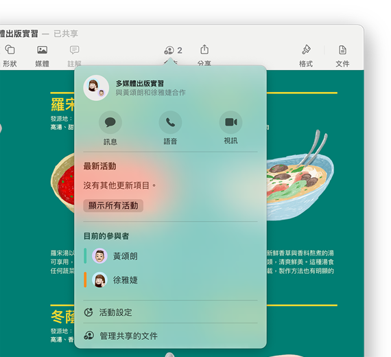 輕鬆協力合作並共享檔案、檔案夾、文件以及更多資料,出門在外也可進行,只須發送一個私人連結即可。其他人能否檢視、共享或編輯內容,也都由你控制。透過即時更新,你可以在第一時間看到大家所做的編輯。