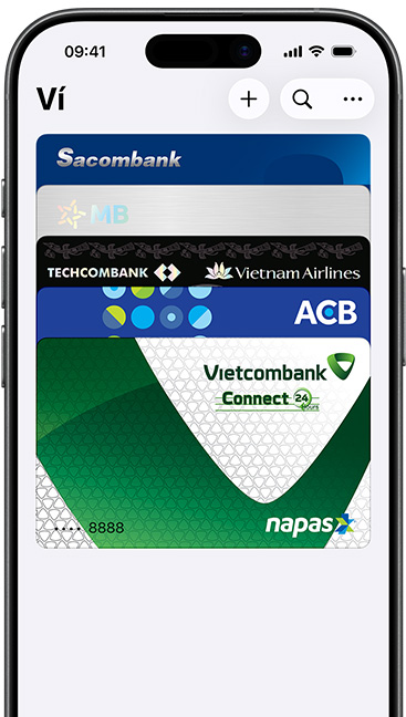 • Ví Apple là một ứng dụng trên iPhone và Apple Watch giúp bạn sắp xếp an toàn và thuận tiện các thẻ tín dụng và thẻ ghi nợ, thẻ phương tiện công cộng, thẻ lên máy bay, vé, chìa khóa, thẻ tích điểm và hơn thế nữa – tất cả trong cùng một nơi.